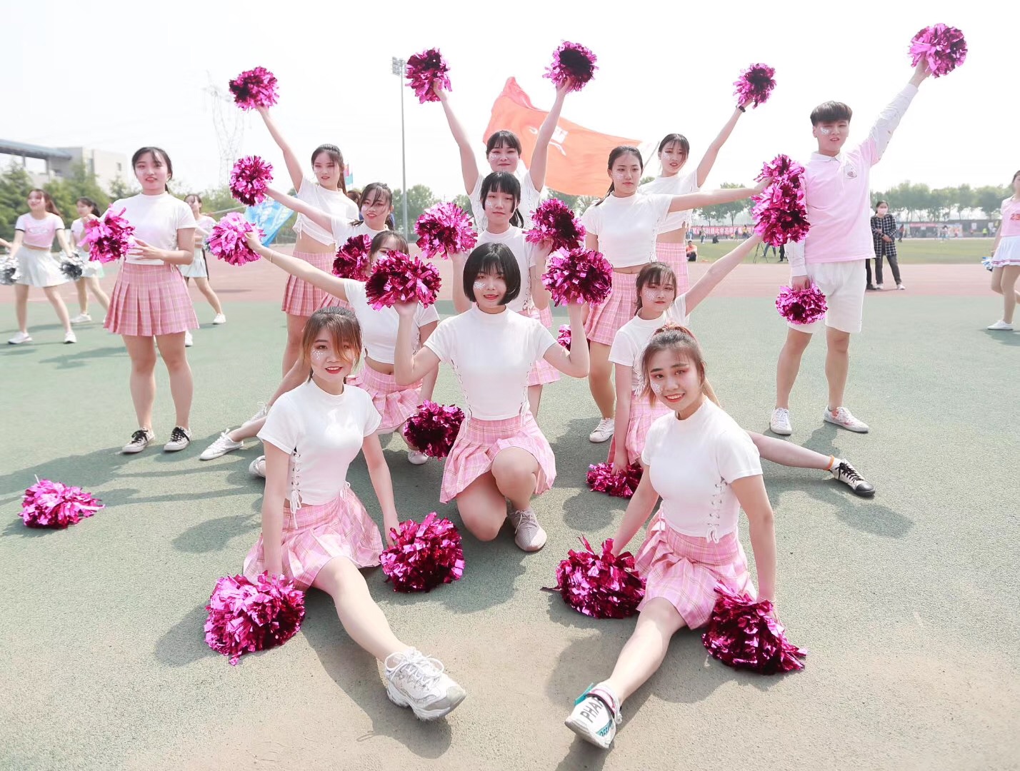 踏上跑道,是一种选择;离开起点,是一种勇气;驰骋赛场,是一种胜利。他们热情饱满、勇敢无惧;他们活力无限,永不言弃。随着比赛的激烈进行,赛场外的啦啦操队员用她们充满活力的舞姿来为赛场上的运动健儿们加油助威。观众也深受感染、热情高涨,一句句加油呐喊,一阵阵擂鼓助威。