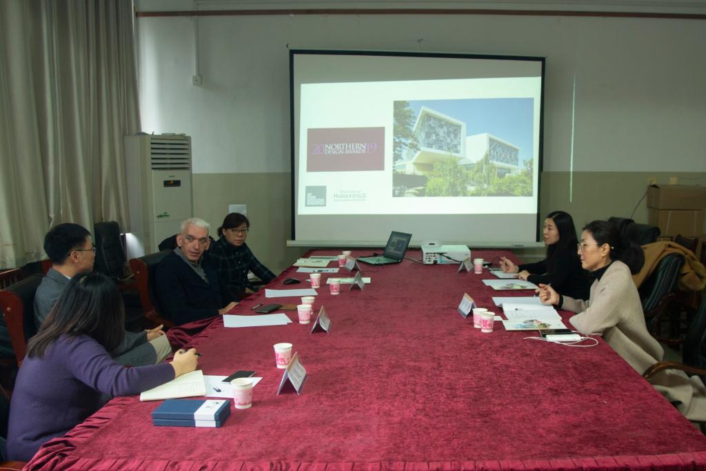 在学科布局、教学机构、特色课程、师资力量、学生就业与对外交流等方面的情况。Liam Devilin教授随后也就英国哈德斯菲尔德大学基本情况进行了介绍,包括学校的地理位置以及学院构架,并重点展示了设计与建筑学院近五年的教学发展目标以及哈德学生的优秀设计成果。双方就下一步在课程国际化、短期游学、设计工作坊授课等多方面合作进行了研究讨论,并达成初步合作意向。