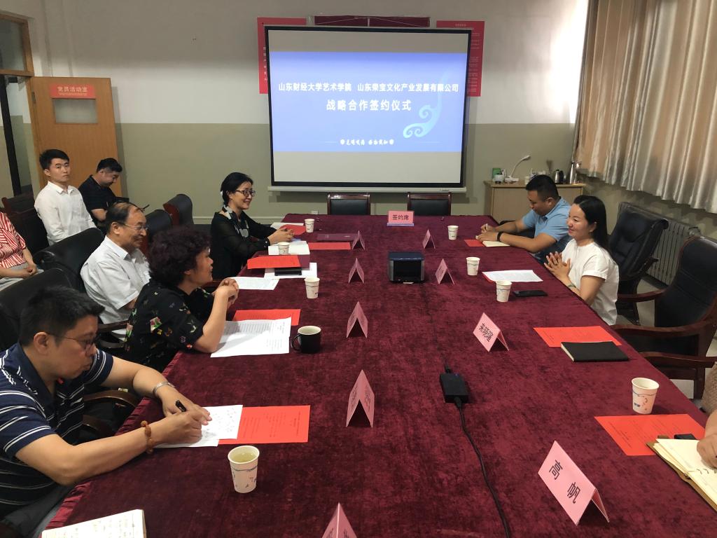 在和谐愉快的氛围中,院长范正红与济宁荣宝斋文化发展有限公司总经理谢小君签署了校企战略合作协议;副院长杨秀丽与济宁荣宝斋文化发展有限公司总经理谢小君签署了横向课题合作协议,共同拉开了校企深度合作的帷幕。