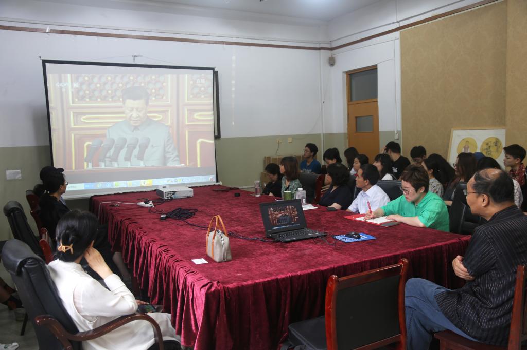组织全院党员以及部分学生入党积极分子于燕山校区1204教室观看本次大会直播,并展开专题研讨。