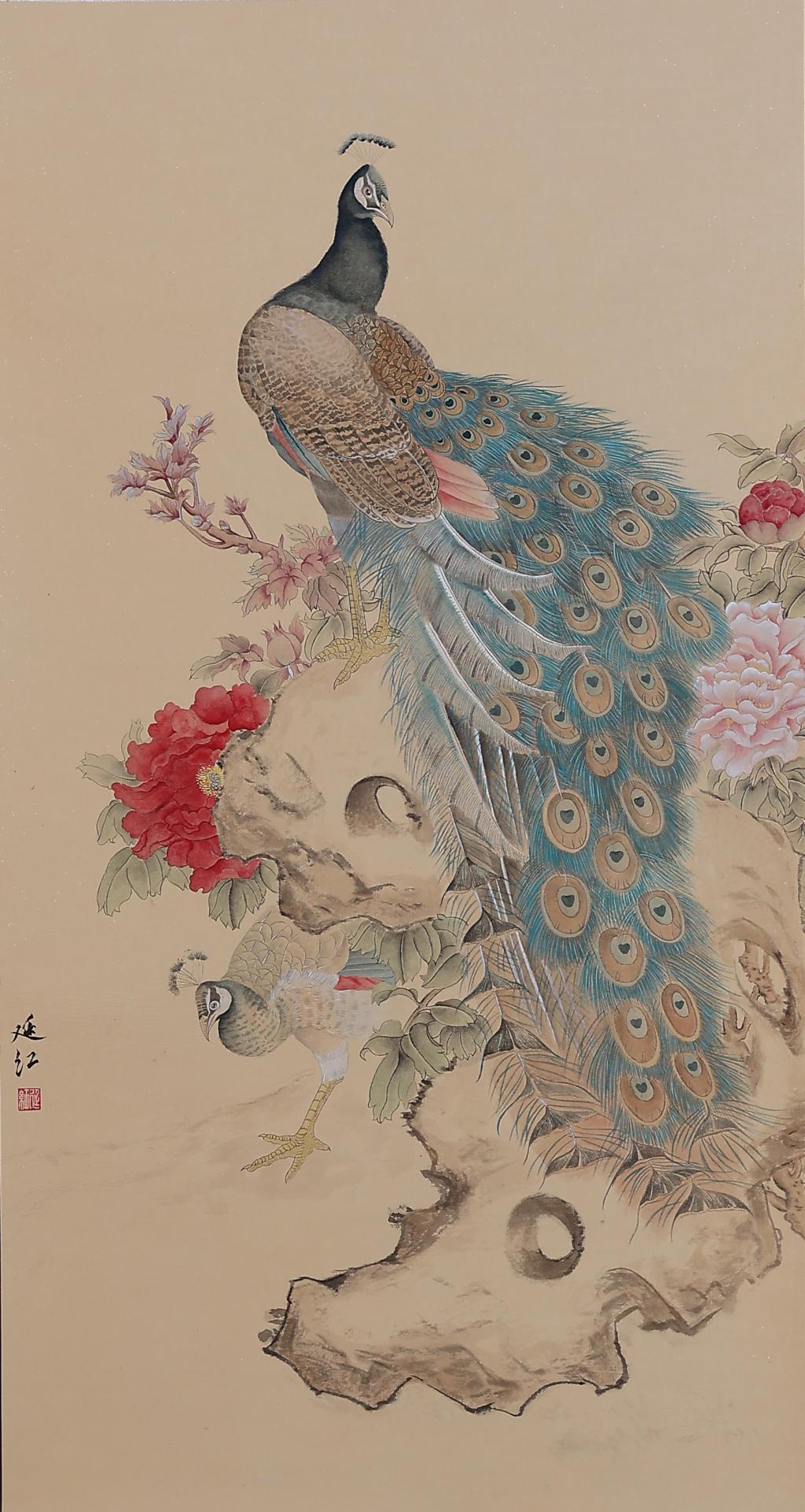 Flowers and birds are the traditional theme of Chinese painting, which I use for creation, blending flowers and birds into the picture harmoniously. In terms of color matching, I also choose the traditional cinnabar, garcinia and three greens, making the picture simple, natural and serene.