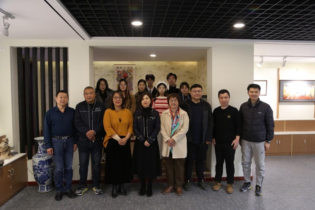 就业办主任史萌、设计系副主任马熙逵,合作共建单位山东瑞博广告有限公司负责人田德柱、设计总监张言乐带领学生代表共同走进山东省工艺美术协会,在协会会长袁敏的带领下参观了协会馆藏并进行了深入交流。参观中,师生深入了解了山东地区丰富的工艺美术种类和传统技艺。展馆内陈设的各种饱含山东本土特色的砚台、刺绣、瓷雕、核雕、石雕、锡雕、竹编、琉璃、泥塑等各种类型的工艺美术作品,或精致细腻,或大气磅礴,既富有传统韵味,又融入了现代元素,展现出工艺美术大师们独特的艺术风格和精湛的手工技艺。让师生对山东工艺美术有了更深入的了解。