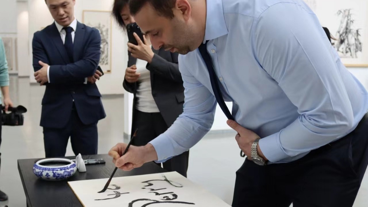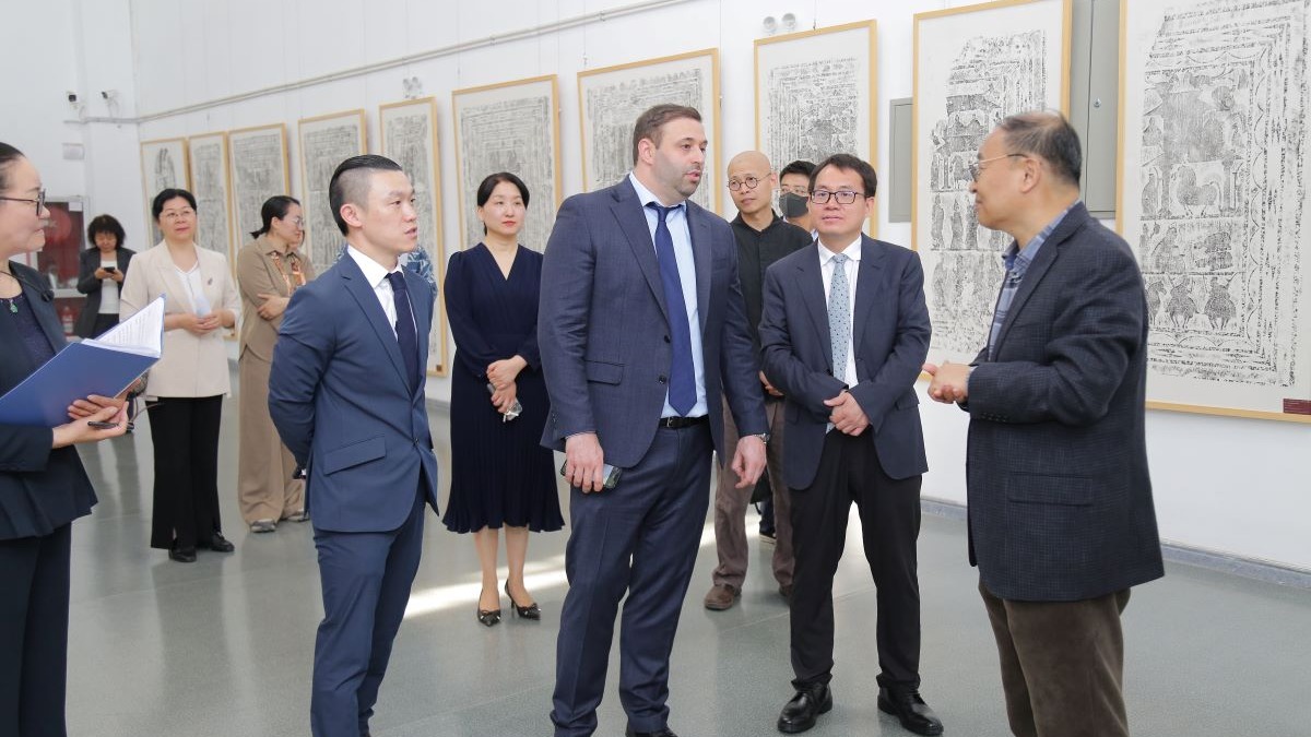 ,杰克佩里对我校把废弃锅炉房进行全方位改造,变废为宝,改造成独具特色的办公教学场所,特别是建成了融传统工业风格与现代艺术设计为一体的海岱美术馆表示赞赏,走进美术馆大厅,他对馆藏的书法绘画作品和金石拓片非常感兴趣,认真听取工作人员的讲解并不时提出问题,时而分享个人观点,与大家开展了深入交流,参观结束前,杰克佩里还兴致勃勃地在留言册上用毛笔签下“xiao xiao perry,48”作为永久留念。