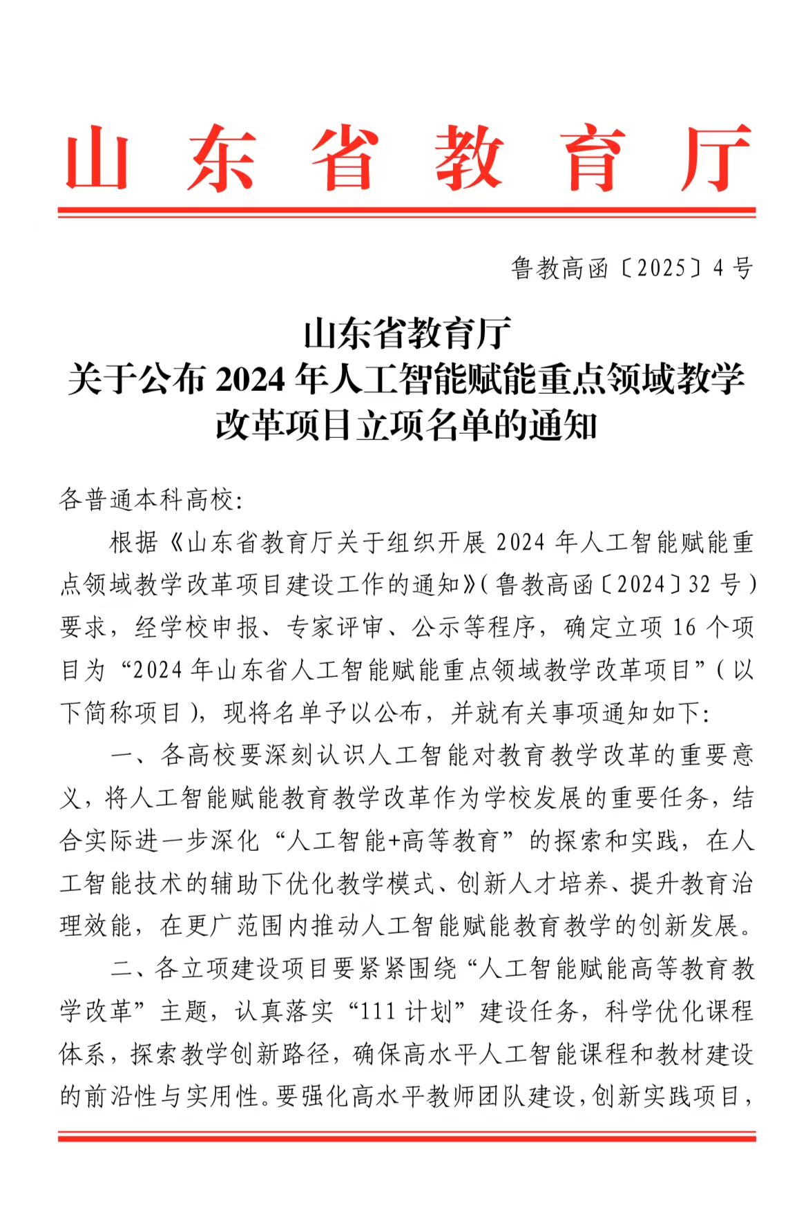 日前,山东省教育厅公布了2024年山东省本科高校人工智能赋能重点领域教学改革“111计划”项目(简称“111计划”)立项名单,全省共16项。此次公布的“111计划”名单中,我校与山东工艺美术学院、山东捕鱼达人破解版