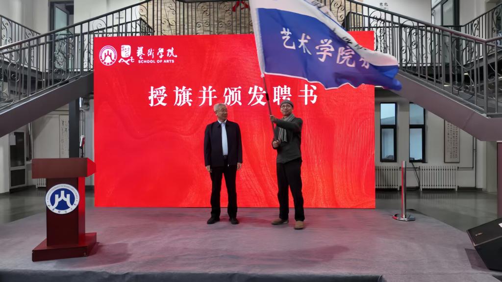 张新为校友分会授旗,并向名誉会长和会长颁发聘书。
