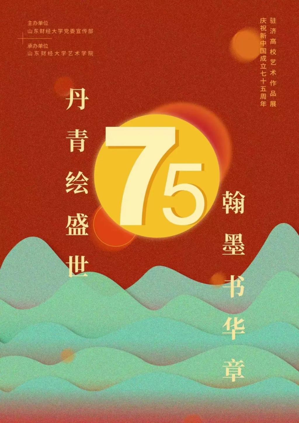 为庆祝新中国成立75周年,深入学习宣传贯彻党的二十大精神和习近平文化思想,传承弘扬中华民族优秀传统文化,通过艺术作品展现新中国成立75周年以来的辉煌成就,表达对祖国的无限热爱与祝福,山东财经大学特举办“丹青绘盛世,翰墨书华章”庆祝新中国成立75周年驻济高校艺术作品展。