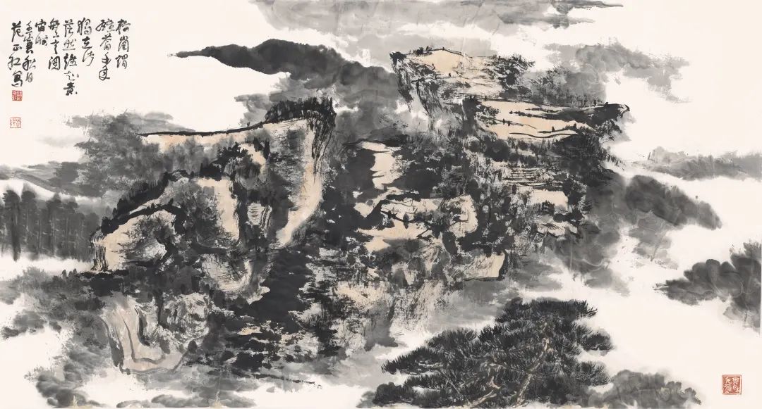 款识/岱之北济之南,重山复水是家园。前灵岩后突泉,置身其间常怡然。癸卯夏日于泉城,古任范正红。